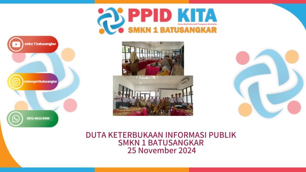 Pada 25 November 2024 telah dilaksanakan penetapan Duta Informasi Publik SMKN 1 Batusangkar dengan mengambil siswa yang unggulan di sekolah
