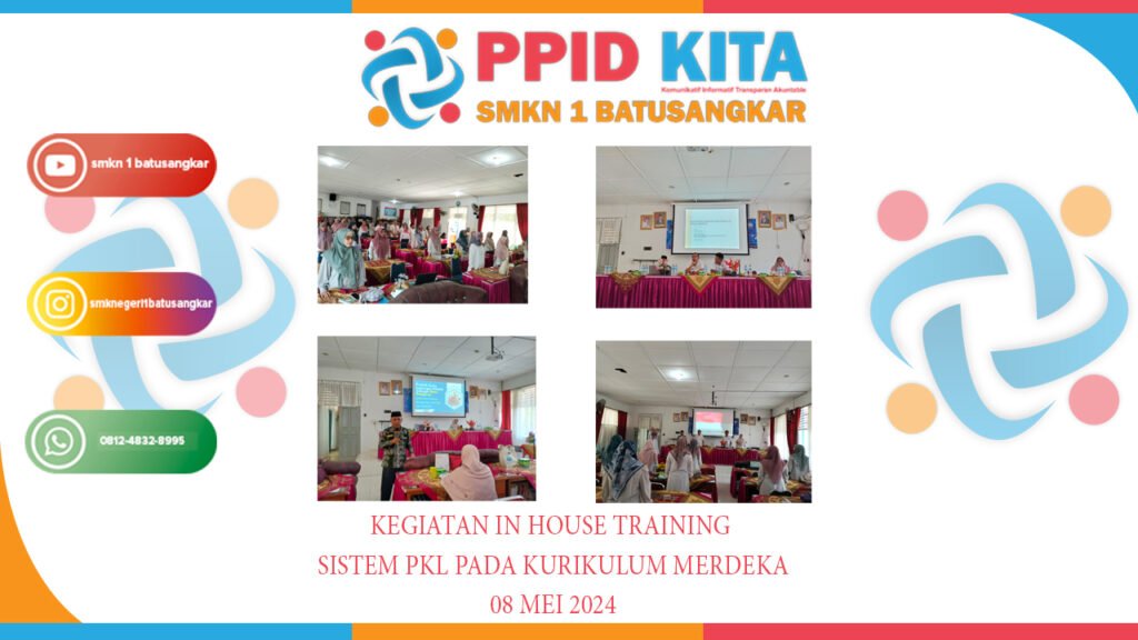 Pada hari rabu tanggal 08 mei 2024 SMKN 1 Batusangkar melaksanakan kegiatan In House Training tentang Sistem PKL pada kurikulum merdeka yang dihadiri oleh ketua komite dan sekuruh guru serta tenaga kependidikan.