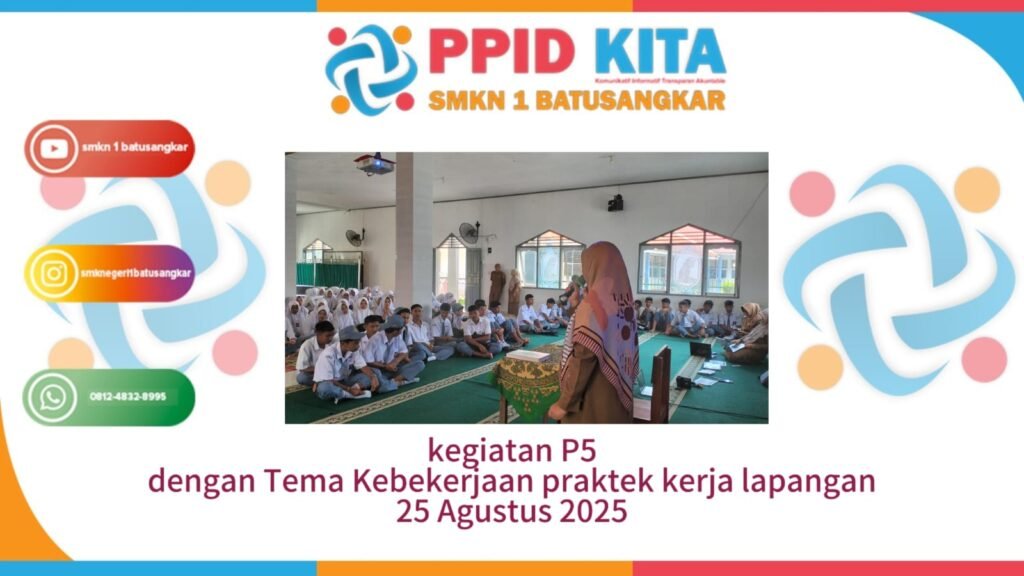 Kegiatan P5 dengan tema kebekerjaan praktek kerja lapangan yang diikuti oleh seluruh siswa siswi kelas XII SMKN 1 Batusangkar yang didampingi dan memberikan materi oleh guru bahasa indonesia, guru bahasa inggris, guru Bimbingan Konseling, Guru Pendidikan agama islam.