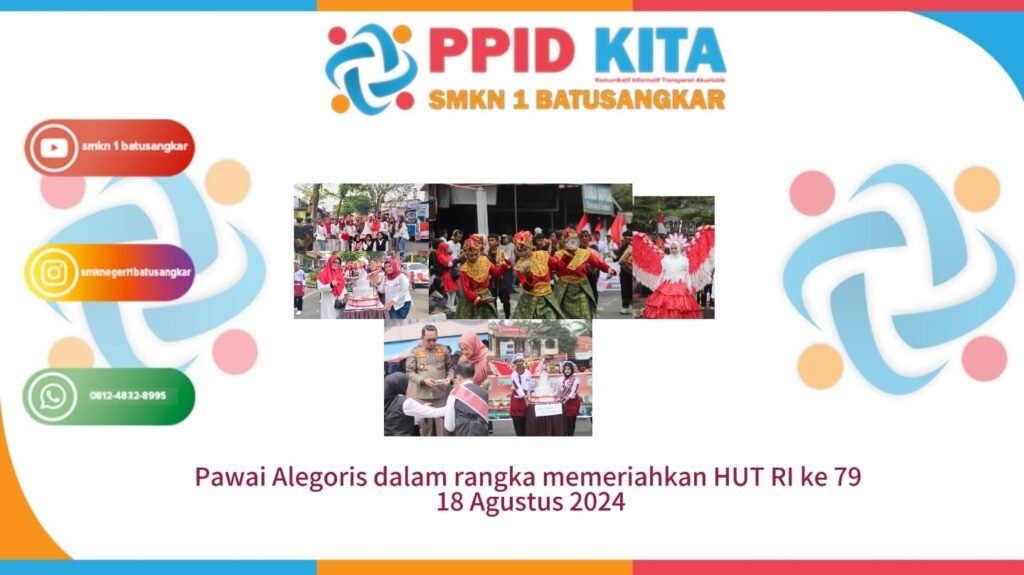 Pada hari Minggu tanggal 18 Agustus 2024 SMKN 1 Batusangkar mengikuti kegiatan pawai Alegoris dalam rangka memeriahkan HUT RI ke-79 di Lapangan Cindua Mato Batusangkar