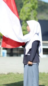 selanjutnya penyerahan bendera OSIS kepada ketua OSIS baru