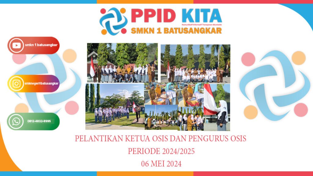 Pada hari senin 06 Mei 2024 di Lapangan SMKN 1 Batusangkar melaksanakan kegiatan pelantikan pengurus OSIS 2024/2025 sekaligus purna tugas OSIS lama periode 2023/2024