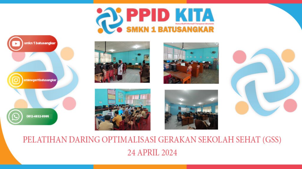 pada hari rabu 24 April SMKN 1 Batusangkar melaksanakan kegiatan optimalisasi gerakan sekolah sehat melalui produksi konten edukasi dengan siswa sebagai micro influenser yang mana ini program gerakan sekolah sehat dari KEMENDIKBUDRISTEK yang diikuti oleh 100 siswa siswi disetiap sekolah masing-masing dan siswa akan masuk ke room pembelajaran sesuai dengan peminatan yang telah dipilih seperti website, instagram, tiktok