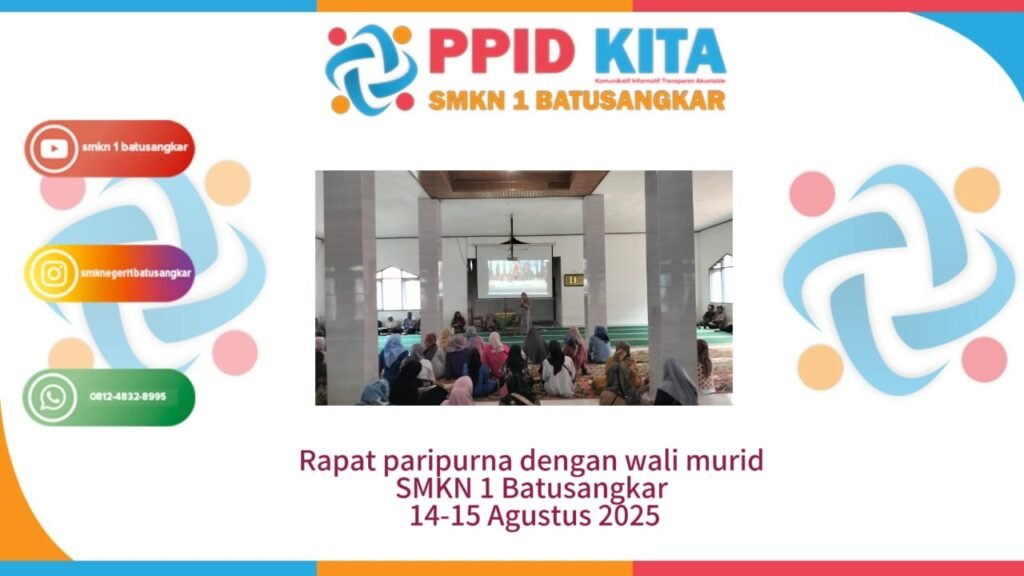 Rapat paripurna komite sekolah dilaksanakan di mushola SMKN 1 Batusangkar dengan mengundang orang tua/wali murid untuk membahas dan menyepakati program sekolah, mengevaluasi kinerja, serta meningkatkan mutu pendidikan secara gotong royong